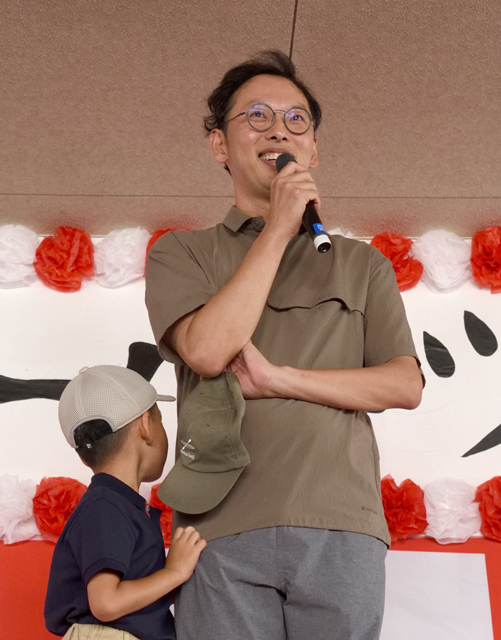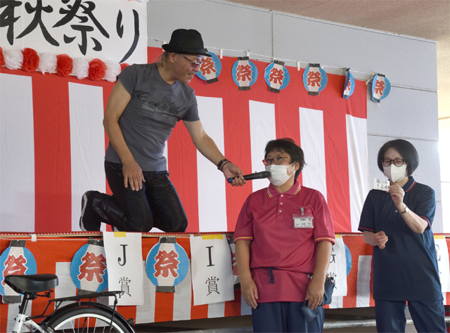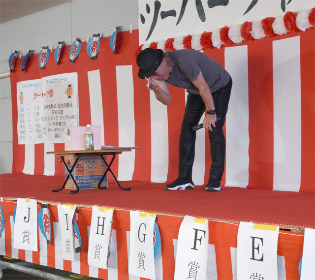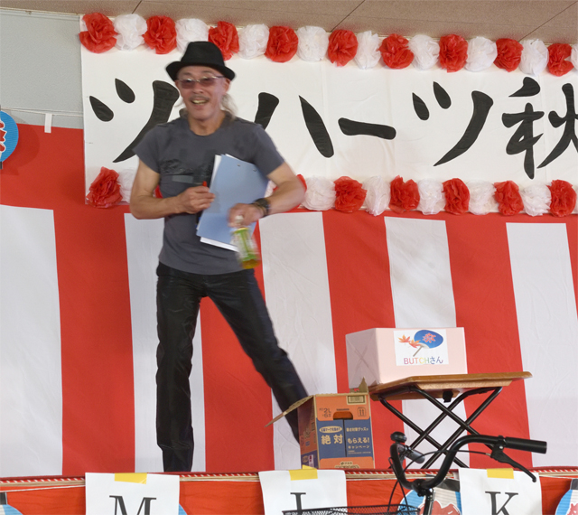 久しぶりにツーハーツに来てくださった めんたい☆キッド。大きな声でマッチョなギャグで笑わせてくれました。希望された方を「お姫様だっこ」したり、チョップを受けたりと盛り上げてくれました。