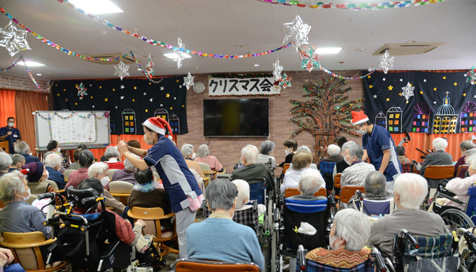 12月 15日(金)ツーハーツ1階ホールにて、恒例の「クリスマス会」を開催しました。今年は久しぶりに感染症対策を徹底しての通常開催いたしました。